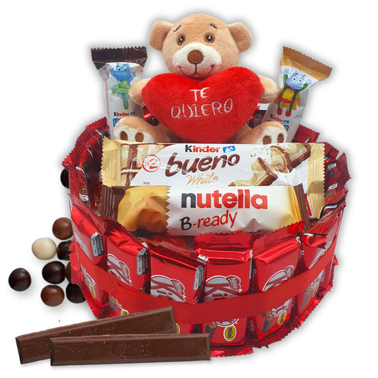 Corazon de Bombones con Bombones Lindt, Kinder Joy, Barritas Chocolate y Kinder Shochobons. Regalo Deluxe Ideal para Aniversarios. [IAMI]