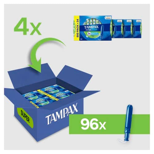 Tampax Compak Pearl Super Sello con aplicador x 96