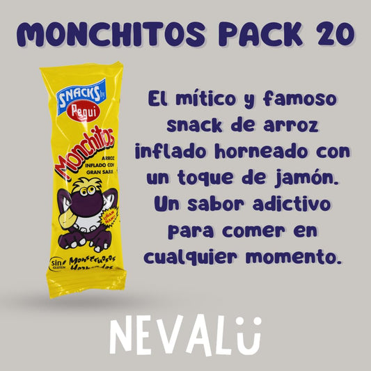 Pegui Monchitos Arroz Inflado Sabor Jamón - 20 Bolsas de 10 gr. Sin Gluten.