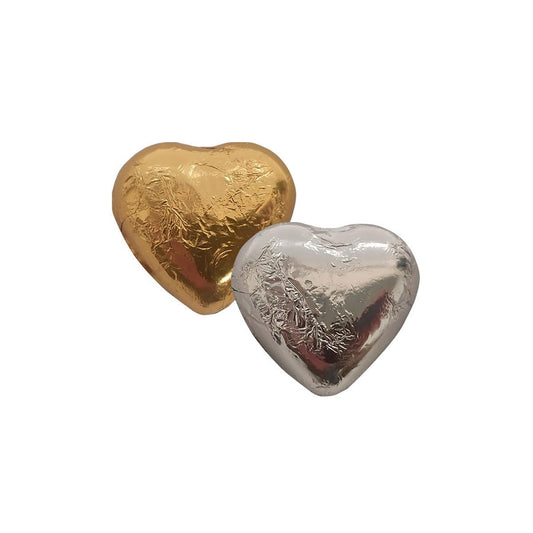 Corazones de Chocolate con Leche con decoración en color plata y oro Interdulces 1 kg