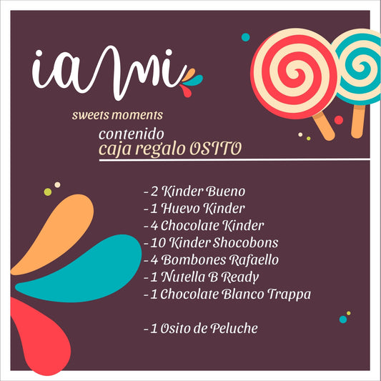 Caja Regalo Chocolate Kinder - Raffaelo con Osito de Peluche. Regalo Original con Chocolate para Aniversarios, San Valentin. [IAMI] (Osito Marron)