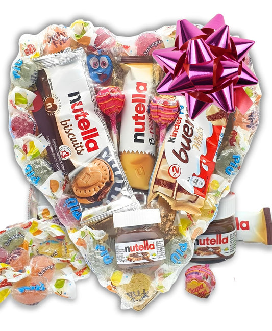Corazon de Bombones con Bombones Lindt, Kinder Joy, Barritas Chocolate y Kinder Shochobons. Regalo Deluxe Ideal para Aniversarios. [IAMI]