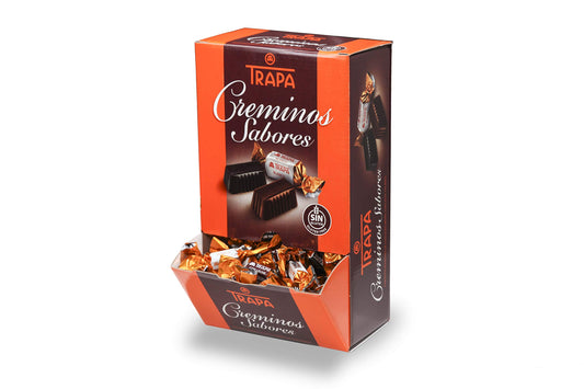 TRAPA - CREMINOS. Dispensador de Bombones Creminos Variados - Chocolate negro, Chocolate Blanco y Chocolate con Leche - 800 gr