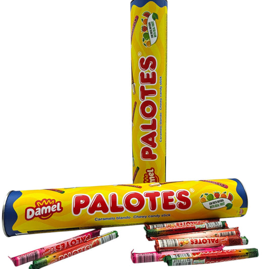 Palotes Tubo 50 unidades - 5 Sabores Surtidos: Fresa - Sandia - Naranja - Manzana - Melocoton - Palotes Damel Surtidos