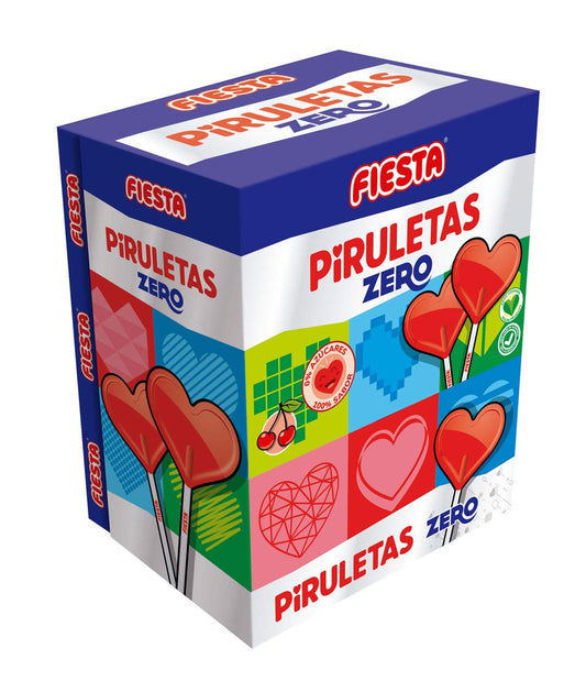 FIESTA Piruletas Zero Caramelo con Palo en Forma de Coraz?n Sabor Cereza - Sin Az?car - Caja de 70 unidades