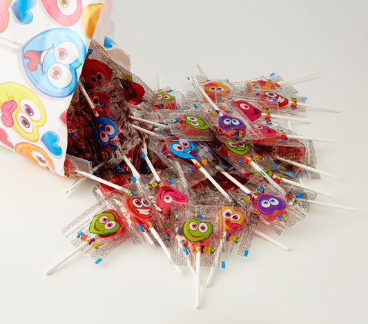 Fiesta Kojak Caramelo con Palo Relleno de Chicle Sabor Cereza - 100 Piezas s
