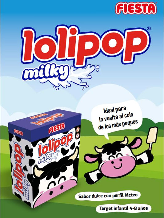 Lolipop Milky - Sabor Leche - FIESTA. Caramelo Masticable Lolipop Sabor Leche - Caja con 100 Lolipop - Ideal para Peques