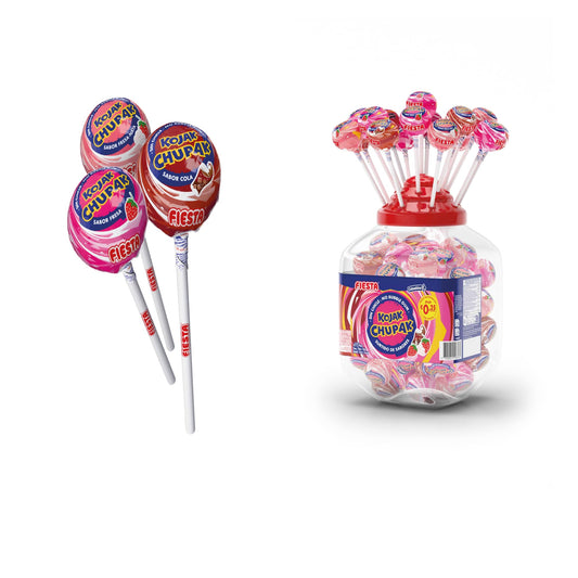 FIESTA Kojak Caramelo con Palo Sabor Cola Relleno de Chicle - Caja de 100 unidades