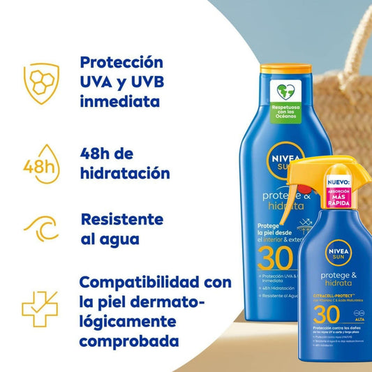 Pack Crema Solar Nivea Sun Factor 30 + Bolso Yute de Regalo - Protector hidratante y resistente al agua con protecci?n UVA/UVB (Pack Crema+Spray+Bolso)