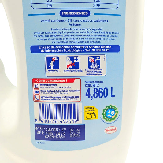 Suavizante Vernel Profesional - CIELO AZUL - Botella 5 Litros - 108 Lavados + 500 kg de Ropa