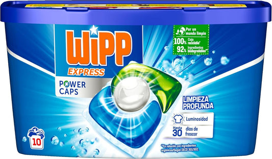 Wipp Express Power Caps Detergente en Capsulas para Lavadora- 80 Dosis - 10 x 8 Capsulas. Limpieza Profunda, Eficaz en Agua Fr?a