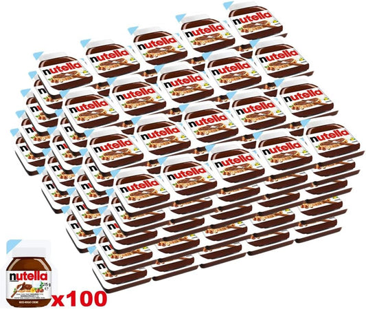 FERRERO - Nutella en monodosis, set de 100 unidades de 15 g, crema de avellanas y chocolate para untar - Pack Promoo