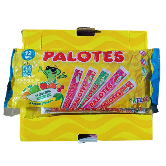 Palotes Tubo 50 unidades - 5 Sabores Surtidos: Fresa - Sandia - Naranja - Manzana - Melocoton - Palotes Damel Surtidos