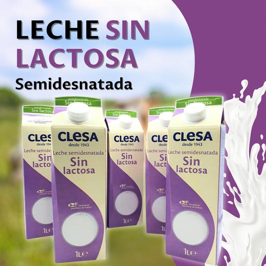 Leche Clesa SIN LACTOSA Semi Desnatada - 6 Bricks de 1 Litro - 100% Leche Gallega - Tapon Anti Goteo - 6 Litros Leche Sin Lactosa [CLESA]