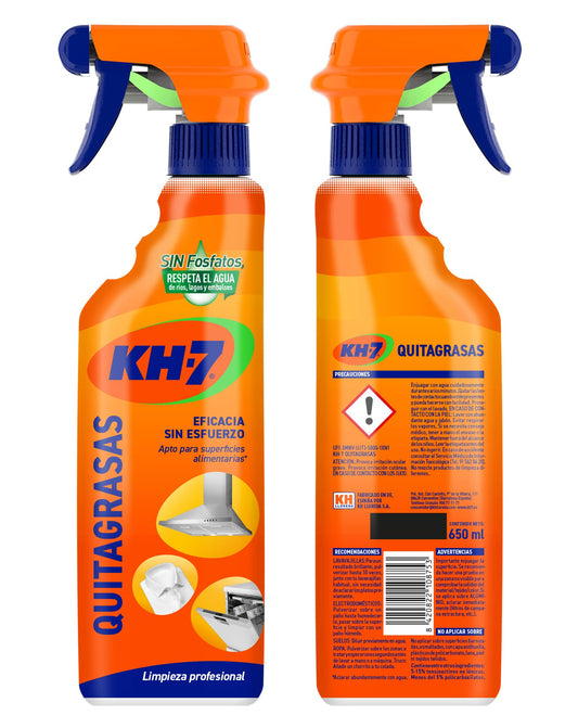 KH-7 Quitagrasas, Desengrasante, Elimina sin esfuerzo la grasa y suciedad de la cocina, ropa o exterior, Para todo tipo de Superficies y Tejidos - Pulverizador 650ml, 6 unidades