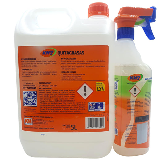 PACK Kh7 QuitaGrasas Desengrasante Profesional 5 Litros + Pistola Kh-7 Quitagrasas Citrico GRATIS 715 ml