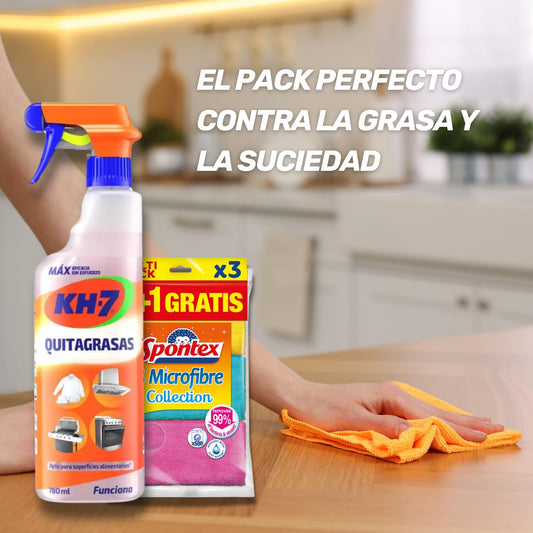 Kits Kh7 Quitagrasas + 3 Bayeta | Pack Ahorro KH-7 Quitagrasas | Máxima eficacia contra la Grasa y Suciedad | 3 Bayetas incluídas