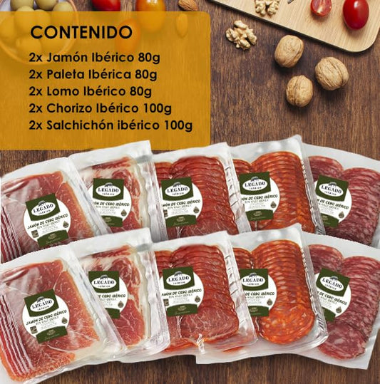 Maletin Seleccion de Ibericos - Jamon Iberico + Embutidos - Legado Iberico - 8 Sobres Loncheados - Edicion Especial Jose Coronado - El Pozo