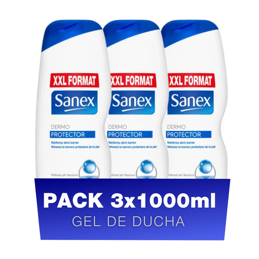Sanex Cuidado Experto Protector Gel de Ducha - PACK 3 x 1000 ml - F?rmula con Prebi?tico Natural, Fortalece la Barrera Protectora de la Piel, 12H Hidrataci?n, 0% Sulfatos, para Todo Tipo de Piel