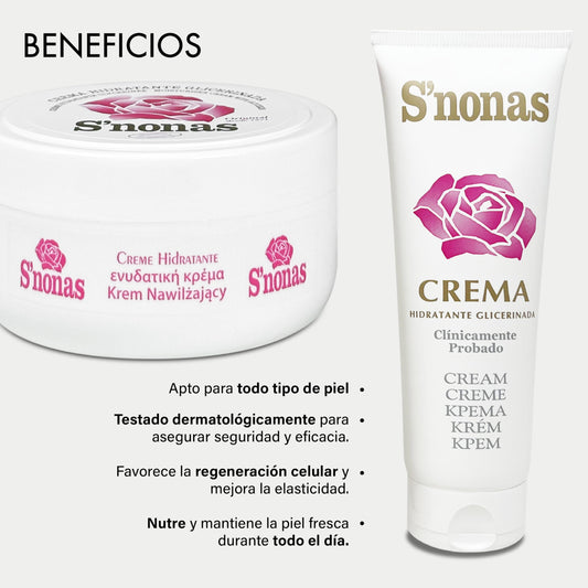 Crema Hidratante Glicerinada S'Nonas - Protección e Hidratación Intensa - ideal para Manos, Codos, Rodillas y Pies, Pack Bote 200ml