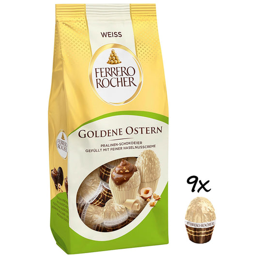 Huevos Ferrero Rocher - Golden Eggs - 3 Sabores: Original - Chocolate Blanco - Chocolate Negro. 3 Paquetes x 90 gr.