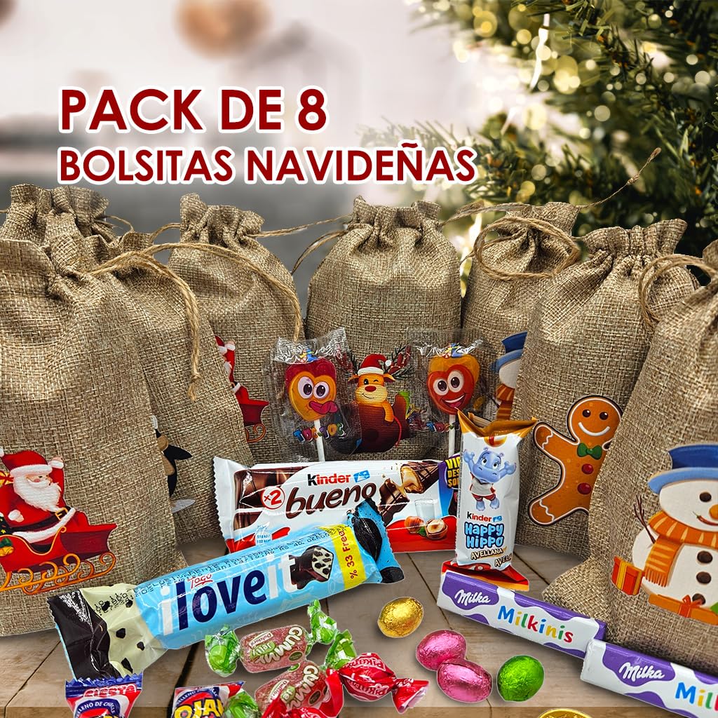 Chocolates y Chuches Navidad, Pack de Bolsas de Lino.