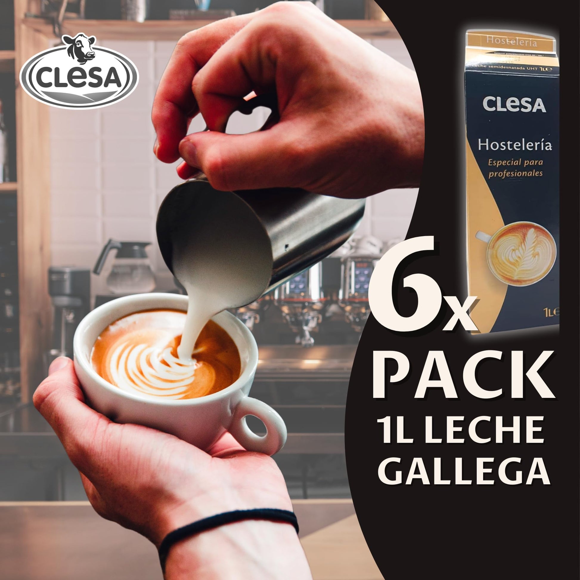 Leche Clesa SemiDesnatada Especial Hosteleria - 6 Bricks de 1 Litro - 100% Leche Gallega - Tapon Anti Goteo - 6 Litros Leche Hosteleria [CLESA]